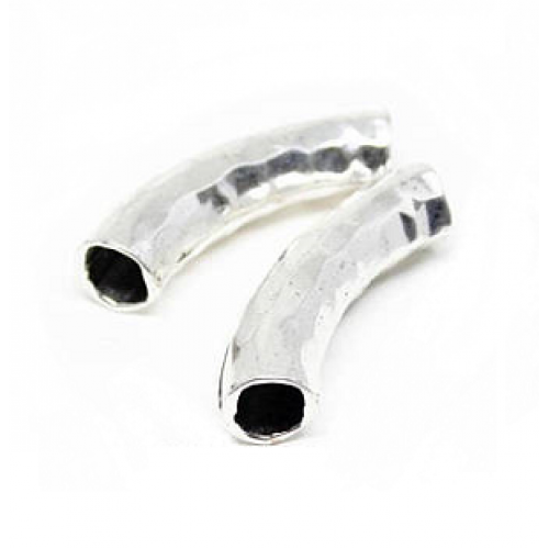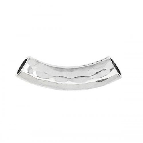 Buis - Kraal- Tube - hamerslag - Hammered afmeting: 43 x 10 mm - gat 8 mm zilveren metaal nikkelvrij - per stuk