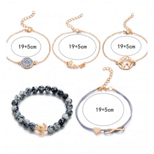 synthetisch kralen edelsteen grijs - goudkleur bedels