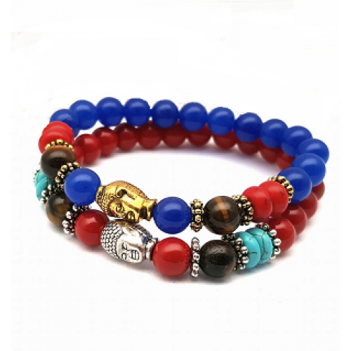 Edelstenen stretch armband met Red Coral/ Turqouise / Tiger eye