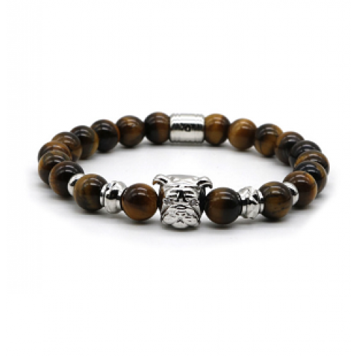 Armband - Heren - Edelstenen 8mm- Tiger eye - stretch - bruin/zwart