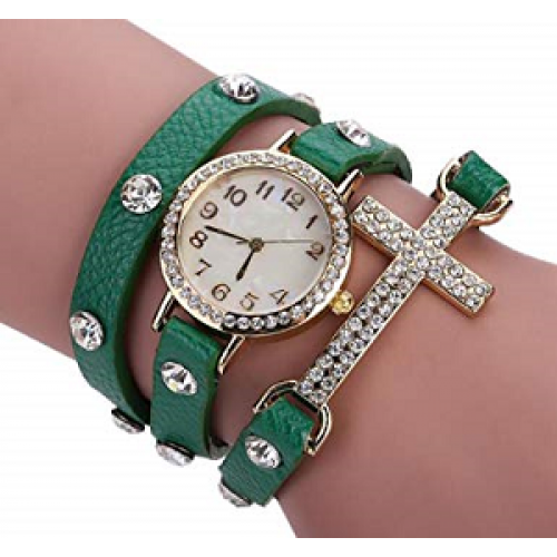 Horloge Wikkel pu lederen band groen met goudkleur kast strass stenen
