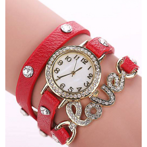 Horloge- goudkleur - kast 3.5 x 3.5 cm - bezet met strass-stenen