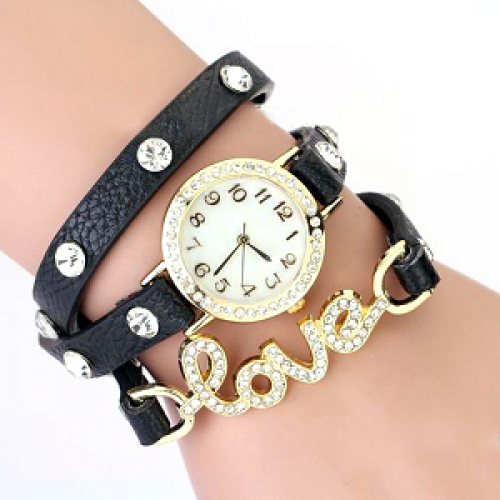 Horloge - goudkleur - kast 3.5 x 3.5 cm - bezet met strass-stenen