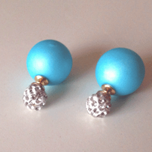 Dubbele oorbellen parel blauw & klei kristal