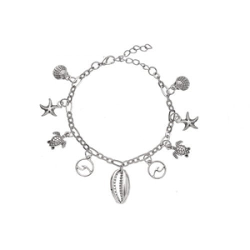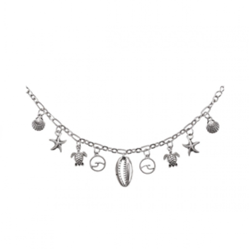 Enkelband Kettinkje met schelp kralen Metaal - silver lengte 24 cm kan eventueel verlengd worden nikkelvrij