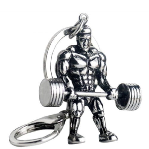 Sleutelhanger Stainless steel Bodybuilder Fitness Dumbbell totale lengte 11x4,5cm Man 50x45mm zilverkleur per stuk