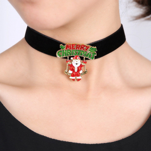 Kerst Ketting Fluweel Choker Kerstman kan ook als broche gedragen worden past altijd- verstelbaar nikkelvrij
