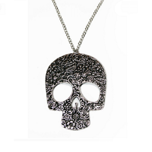 Gegraveerde Doodshoofd ketting of Brons ketting lengte 70 cm hanger : 8 cm lang x 6 cm breed nikkelvrij