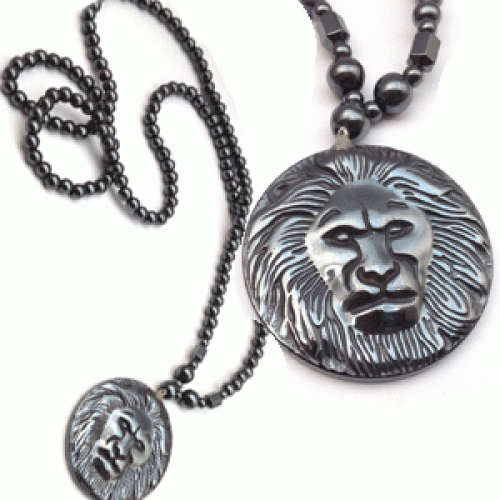 Hematiet Edelstenen Ketting met Hanger Leeuw - handgemaakt uitgekerft Lengte ketting 80 cm Hanger 45mm - doorsnede