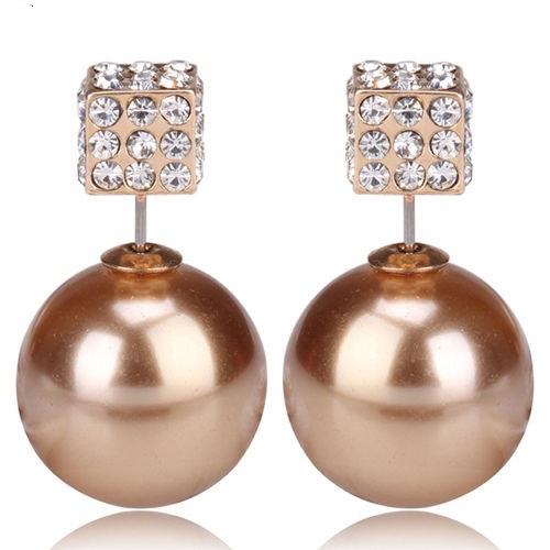 Prachtige Goudkleurige oorbellen Bol / Dots Gold shine met voorkant vierkant bezet met kristallen nikkelvrij