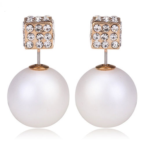 Goudkleurige Dots oorbellen met voorkant vierkant met kristallen