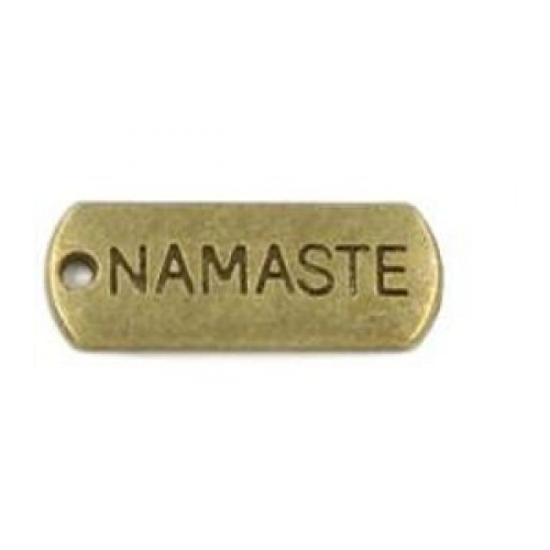 Bronzen bedel - tag - met tekst Namaste
