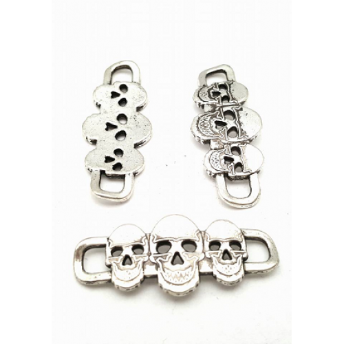 Tibetaans zilveren connector met 3 doodshoofden- skull