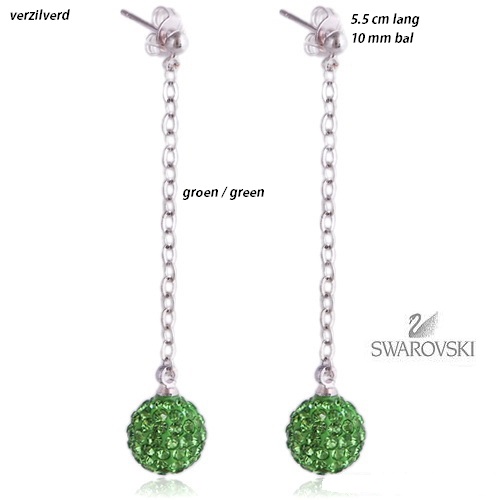 Lange bol oorbellen bezet met Swarovski kristallen - groen zilveren metalen nikkelvrij bollen 10mm per paar