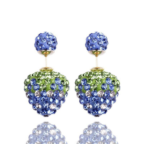 Silverplated Dubbele Crystal - Aardbei oorbellen - Light blue