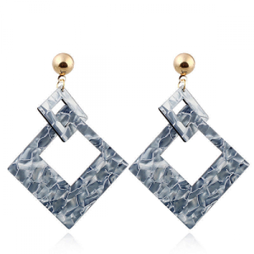 Oorbellen van Acetate parelmoer grijs vierkant afmeting : 4.5 x 7 cm met goud accenten - nikkelvrij per paar