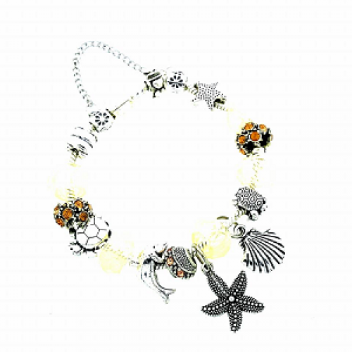 diverse soorten glaskralen en bedels o.a. bloem / schildpad / zeester/ dolfijn-schelp