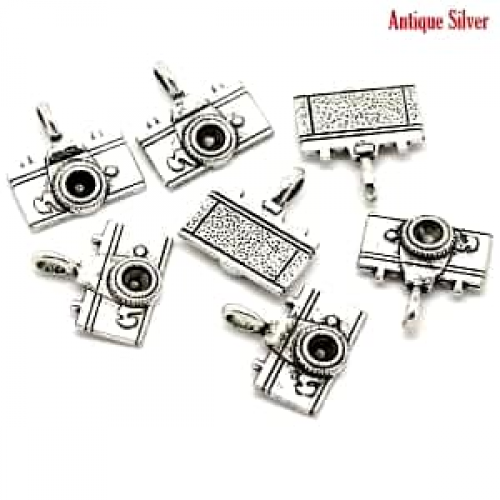 Antiek zilver metaal Bedel Fototoestel 21x20mm rijggat 4.2 mm past een puntsteen in nikkelvrij - per stuk