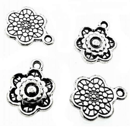 Antiek zilveren bedel - Bohemian Bloem