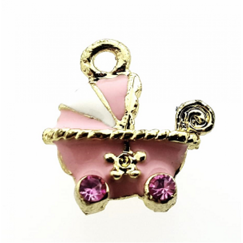 Goldplated metalen Bedel- Kindewagen - Epoxy- Emaille