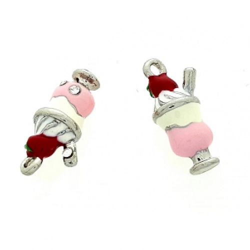 Metaal zilveren bedel - Epoxy - Emaille- Sorbet