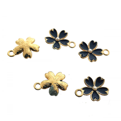 Bedel Bloem Zwart Emaille Parel