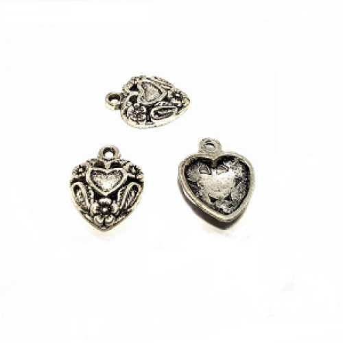 Bedel tibetaans zilveren metalen - Hart - bewerkt afmeting : 19 x 16 mm - gat 1.5 mm nikkelvrij per stuk
