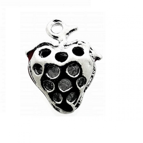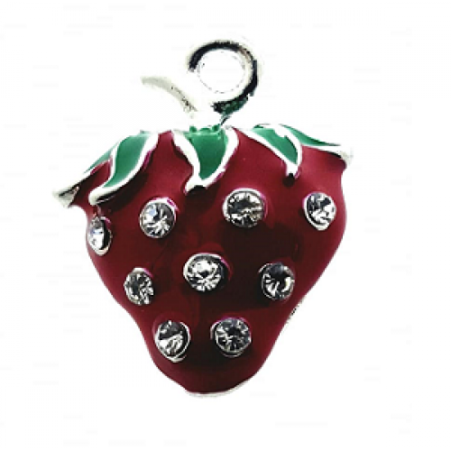 Metaal zilveren bedel - Aardbei - epoxy - emaille - 3D