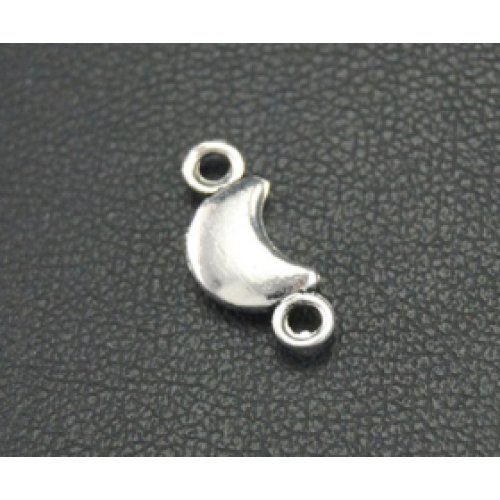Zilveren metalen Bedel - Tussenstuk - 2 ogen Maan - afmeting: 12x4mm - rijggaten 1mm nikkelvrij - per stuk