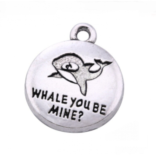 Whale you be Mine? rond - afmeting: 15x18mm rijggat 2mm