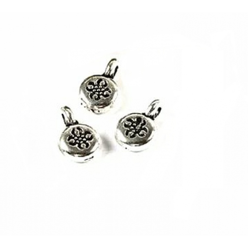 Metaal zilverkleur Bedel - met teken - bloem - Oblate afmeting 10 mm - gat 1 mm per 5 stuks - nikkelvrij