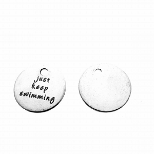 Bedel - stainless steel - 20 mm doorsnede - gat 2 mm met tekst : Just keep Swimming nikkelvrij - per stuk
