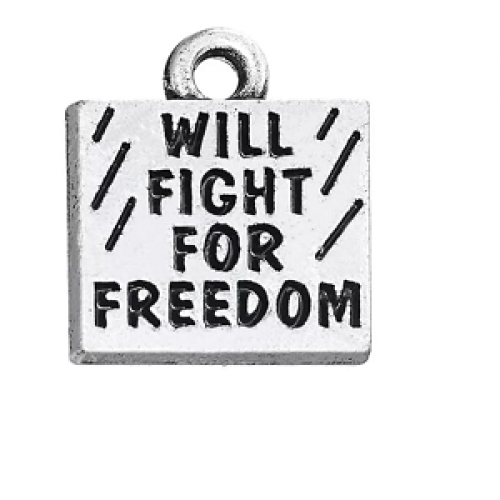 Antiek zilveren metalen bedel Will Fight for Freedome 2 kanten tekst 16x14mm rijggat 2mm nikkelvrij-pstk