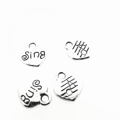 Bedel - metaal zilveren - met tekst SING hart vorm - afmeting : 12 x 10.5 mm gat 2 mm per stuk - nikkelvrij