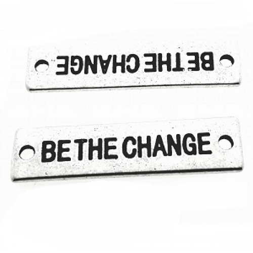 Tussenstuk - label - tag - met tekst tekst: Be the Change afmeting: 31 x 8 mm - gaten 1 mm nikkelvrij - per stuk