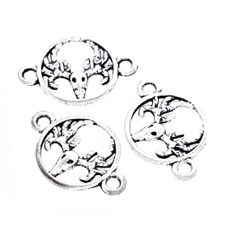Antiek Zilver metaal Tussenstuk - Bedel 2 ogen Rendier- rond-15x23mm rijggaten 2mm nikkelvrij - per stuk