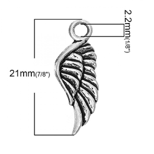Bedel zilverkleur metaal - Vleugel - WIng afmeting: 21 x 8 mm - rijggat 2.2. mm nikkelvrij - per stuk