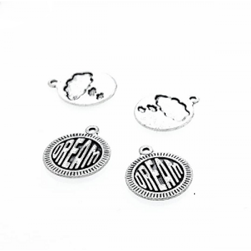 Antiek zilveren metalen bedel rond tekst