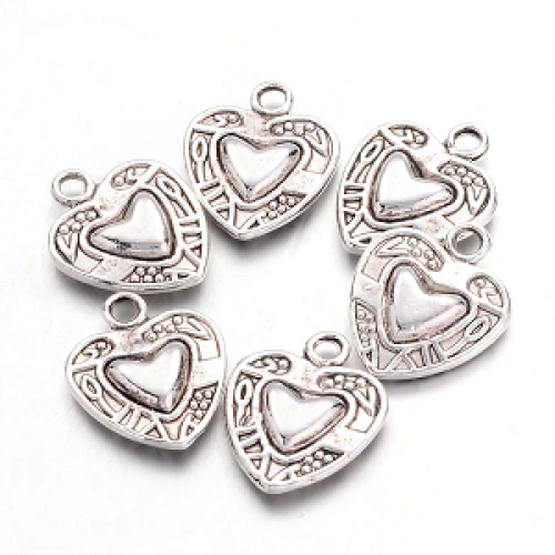 Antiek zilveren metalen bedel van Hart- bewerkt 3D