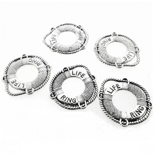 Bedel- zilveren metalen tibetan Boei- Life-Ring afmeting: 24 x 22 mm - gat 3 x 4 mm nikkelvrij per stuk