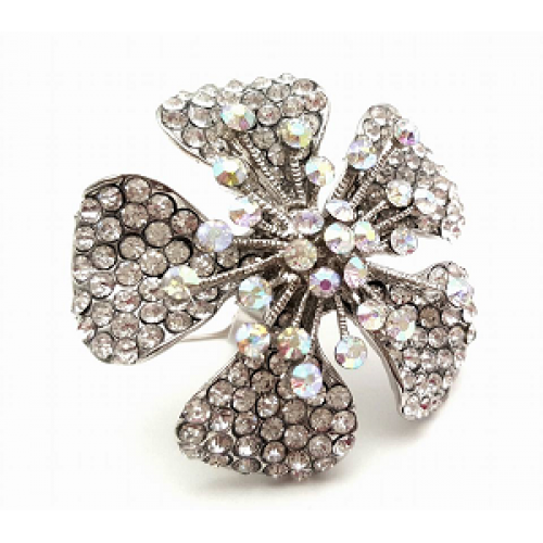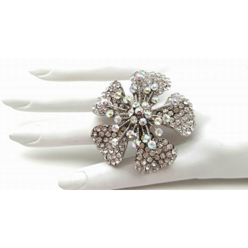 18 krt white goldplated ring - Bloem groot model bezet met