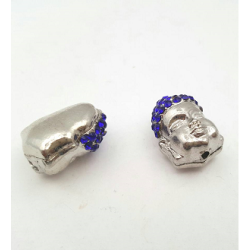 Verzilverde Boeddha kraal met blauw strass stenen