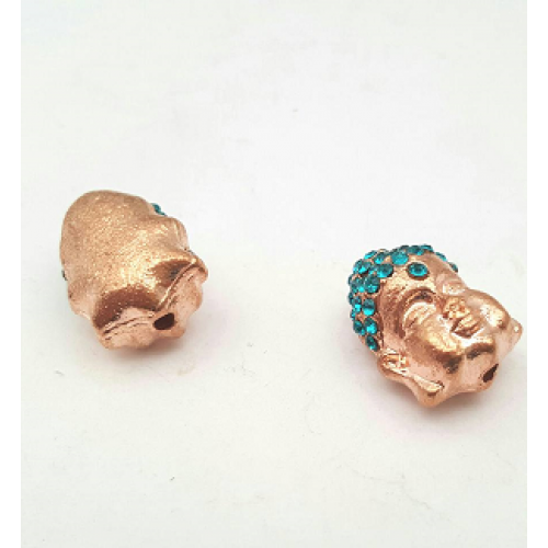 Rose Gold plated boedha hoofd kraal bezet met strassp blauw zeer mooie en zware kwaliteit 20x12mm nikkelvrij
