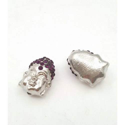 Verzilverde Boedha kraal met strass -paars