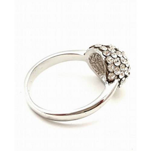18 krt White Goldplated ring met Bol bezet met Clear Swarovski kristallen bol doorsnede 1.5 cm Nikkelvrij