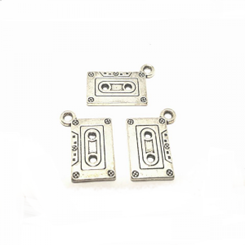 Bedel - tibetaans zilveren metalen - Cassette-bandje Afmeting: 24 x 13 mm - gat 2 mm nikkelvrij per stuk