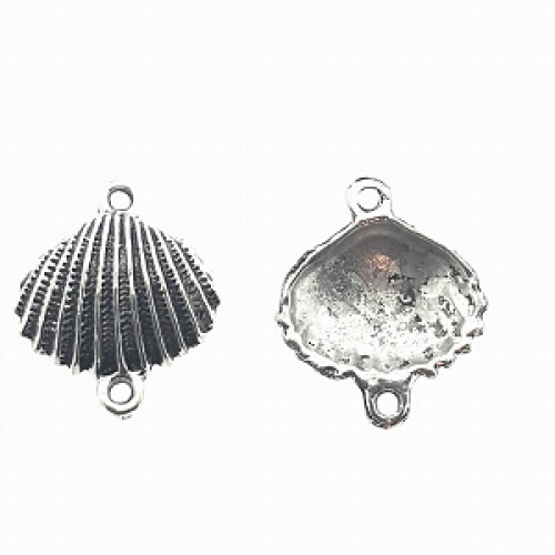 Connector - tussenstuk - Schelp zilveren metalen afmeting: 24 x 20 x 6 mm - gaten 2mm nikkelvrij per stuk