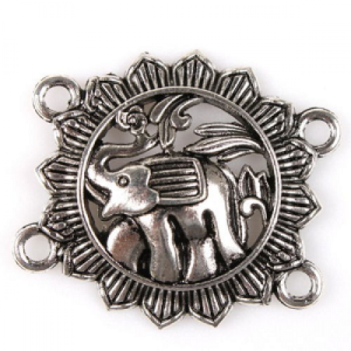 Connector - tussenstuk - Olifant 4 gaten - tibetaans zilveren afmeting: 33 x 30 mm gaten 3 mm nikkelvrij per stuk