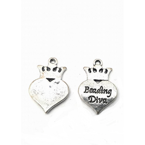 Bedel metaal zilverkleur Hart/Kroon met tekst: