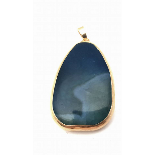 Edelsteen hanger in plated goud met edelsteen - Blauw Agaath -Agaat 60 mm x 35 mm - dik 10 mm nikkelvrij per stuk